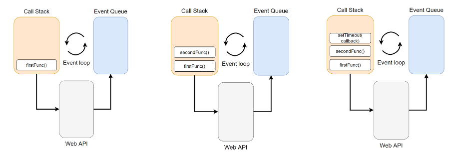 함수가 요청되면 요청된 작업은 순차적으로 stack에 쌓이게 되고 순차적으로 실행됨