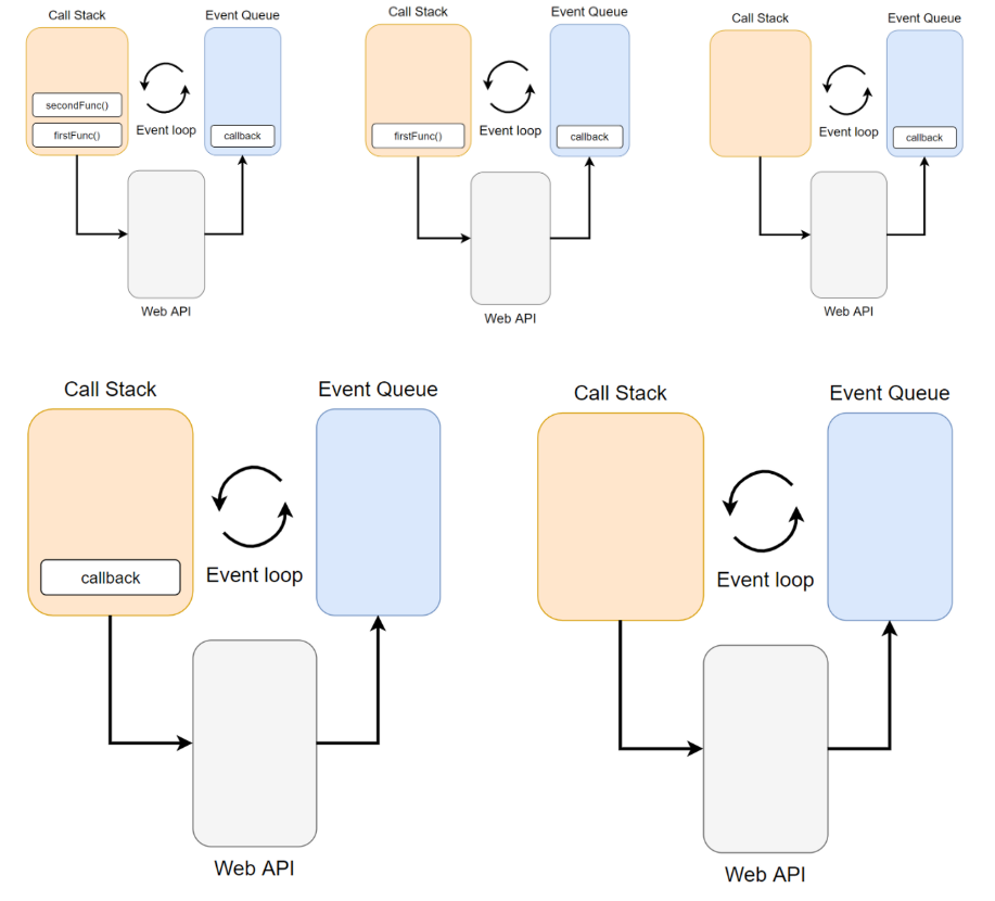 4. 이후, Call Stack이 모두 비었을 때, Call Stack으로 이동되고 실행되게 된다.