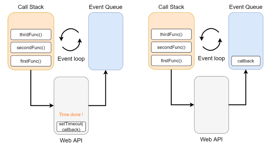 3. 시간이 만료되면 event가 발생하고 callback 함수가 Event Queue로 이동한다.