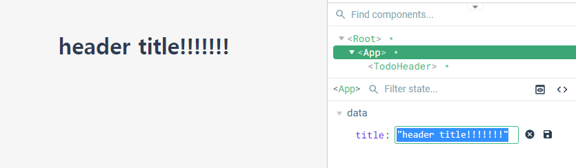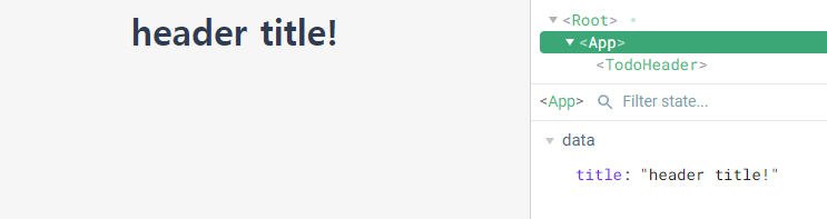 App에서 정의한 title을 AppHeader에서 propsData라는 이름으로 받아 h1으로 출력해 주었다.